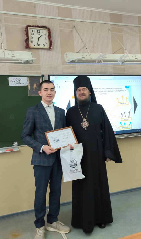 Вручил письма, сборники произведений и подарки лично от себя заместитель Председателя ОП УО Преосвященный Диодор епископ Мелекесский и Чердаклинский.