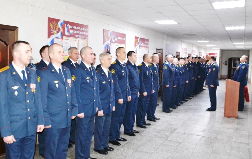 Мероприятие началось с торжественного построения, в ходе которого с поздравительным словом и с пожеланиями дальнейшего продвижения по службе, мира и благополучия в семьях и крепкого здоровья выступили ветераны учреждения Алексей Читнёв и Максим Тимошенко, начальник учреждения Виктор Мосин.