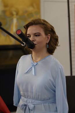 Заключительный музыкальный номер на стихи Тани, исполненный музыкальной группой, стал гимном этого вечера, и посетители выставки подпевали артистам.