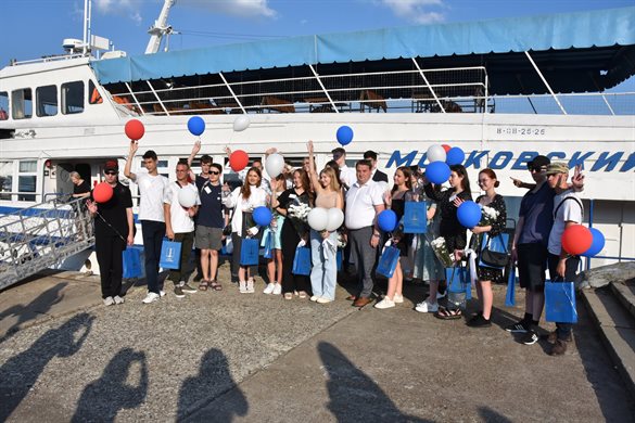 Встреча Александра Болдакина с ребятами, сдавшими единый государственный экзамен на сто и двести баллов, прошла на теплоходе «Московский-20» в акватории Волги.