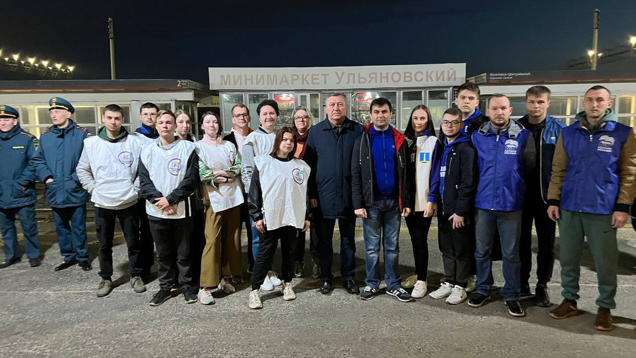 Активисты «Молодой Гвардии» совместно с волонтерами партии «Единая Россия» встретили 20 детей из Шуховского лицея Белгородской области на Центральном железнодорожном вокале города Ульяновска.