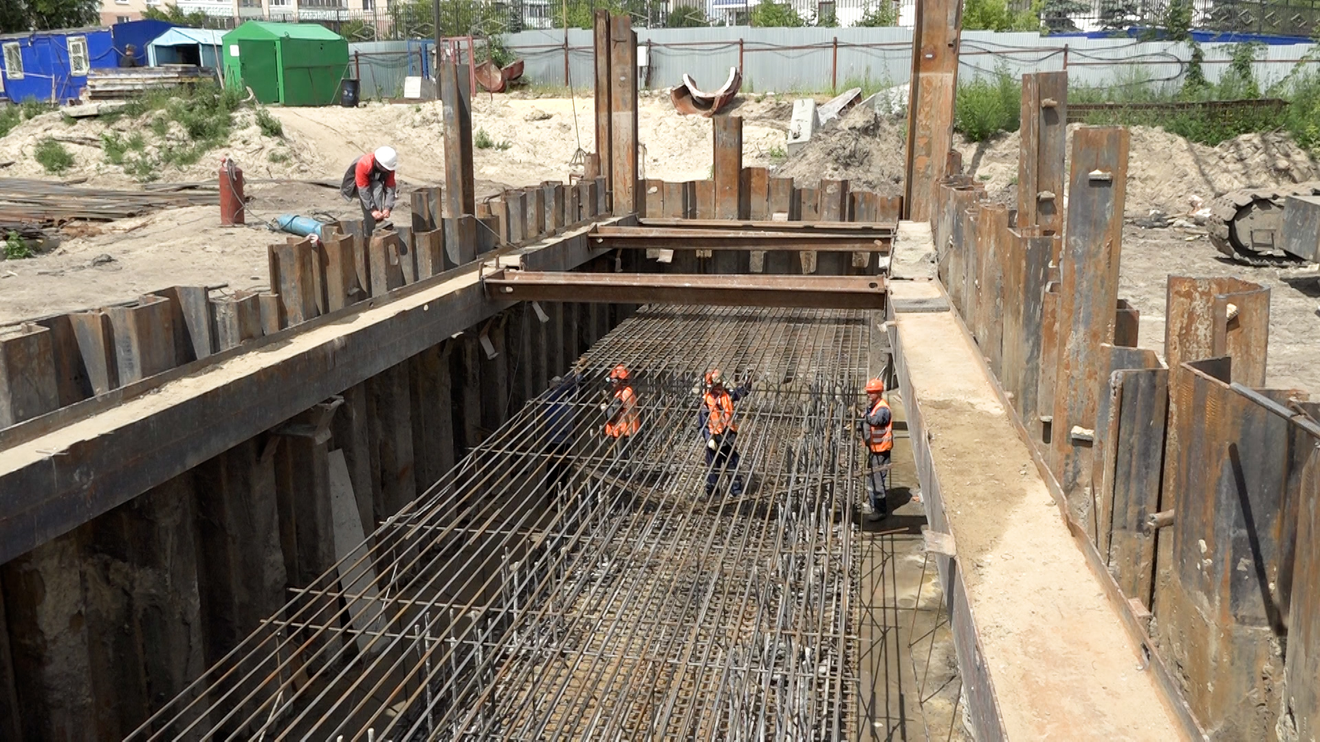 - Выполнена разработка грунта, срубка оголовков свай и заливка тампонажного слоя. Сейчас в котловане на шестиметровой глубине идёт сборка металлического арматурного каркаса для последующего бетонирования монолитного ростверка. После этого сформируем тело опоры, ригели и подферменные площадки под металлические балки. Весь комплекс работ завершим к 10 июля, – рассказал Максим Шутов.