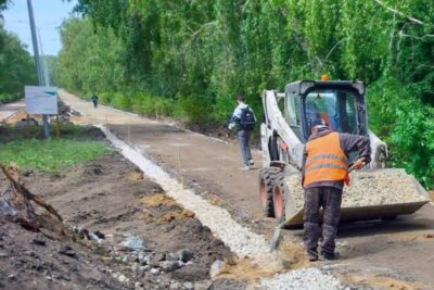 После обновления асфальта установят скамейки, урны, разобьют клумбы. Завершить первый этап благоустройства планируется в кратчайшие сроки — до 1 августа.