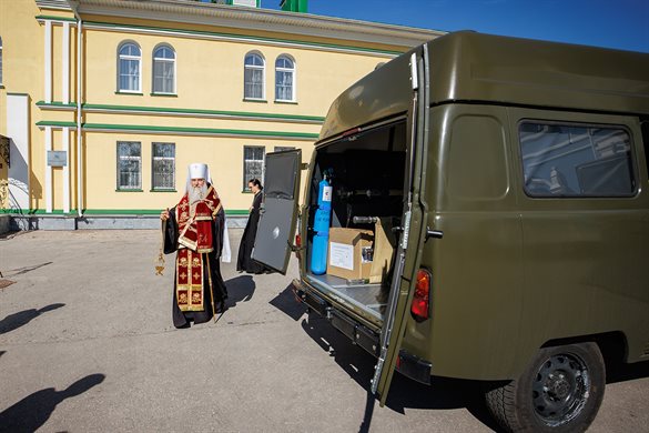 Автомобиль укомплектован аппаратом ИВЛ, специальными средствами для перемещения раненых и травмированных пациентов и необходимыми наборами для оказания первой медицинской помощи. Инициатором передачи машины стала Симбирская епархия. Автомобиль и медицинское оборудование были приобретены на средства епархии и благотворителей.