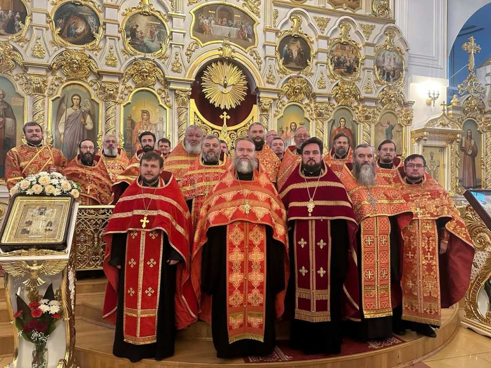 Словно выполняя этот завет единства, более 100 священнослужителей и мирян Мелекесской епархии «единым сердцем и едиными усты» совершили соборный молебен перед иконой и святым ковчегом Георгия Победоносца в Спасо-Вознесенском кафедральном соборе города Ульяновска. После прочтения акафиста великомученику Георгию Победоносцу, просили в молитве у святого Георгия заступничества перед Богом. ФОТОРЕПОРТАЖ СОБЫТИЯ В завершении молебна клир Мелекесской епархии в ярко-красных облачениях торжественно, стройными голосами пропел величание перед иконой, где святой Георгий, поражающий змея, изображён на коне в таком же ярко-красном одеянии поверх воинских доспехов. Столь знакомый и родной русскому сердцу образ мученика первых веков христианства из римского войска - и одновременно Победоносца - навевал в это время размышления о жертвенном служении и самопожертвовании тех солдат, кто находится сейчас на СВО и кто погиб на этой войне. Они – в наших сердцах, они взывают к нашей совести. Их имена, которые мы неслышно произносили, обращаясь к тому, кто несёт Победу, тому подтверждение.