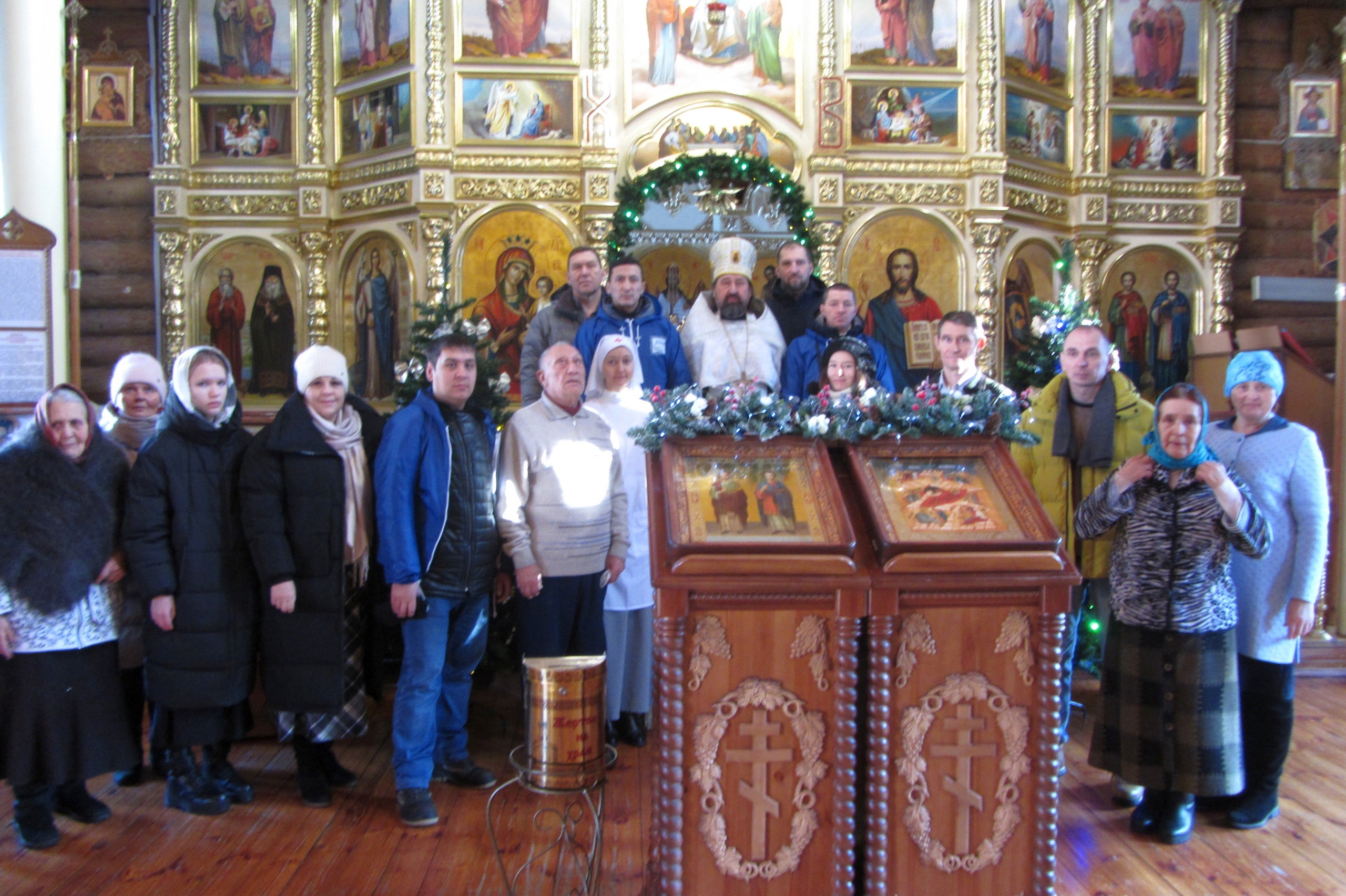 Благотворительную акцию предварил праздничный молебен в стенах храма святых Космы и Дамиана. Отец Олег обратился к присутствующим и поздравил с праздником Рождества Христова.