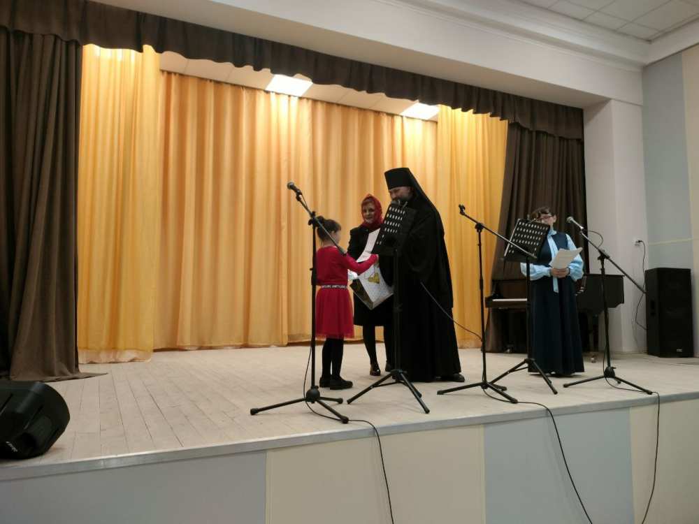 В заключении праздничного концерта настоятель храма св. мч. Татианы пос. Октябрьский иеромонах Иона (Черкасов) поздравил всех с праздником Пасхи, поблагодарил организаторов праздничного концерта и подвел итоги конкурса «Пасхальная радость», наградив победителей грамотой и сладкими подарками.