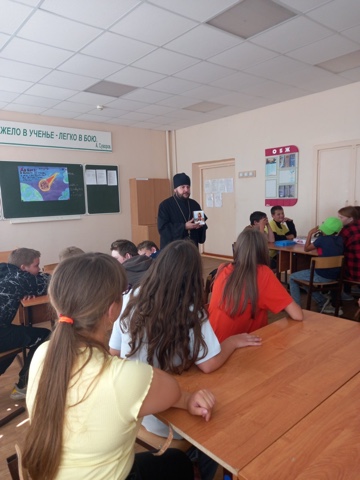 14 июля протоиерей Алексий Исаев посетил пришкольный лагерь при средней школе в Новой Малыкле.