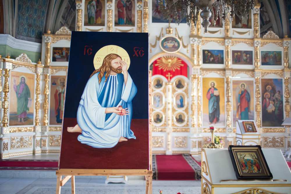 По окончании Божественной литургии настоятель храма Рождества Христова с. Лебяжье священноинок Димитрий (Ипатов) совершил молебен и освятил икону "Плач Иисуса Христа о младенцах, убиенных во чреве".