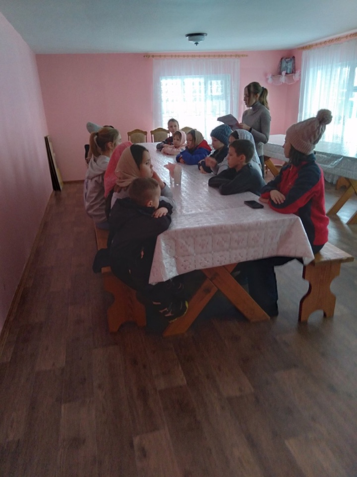Ребята помолились за своих близких, друзей, знакомых на литургии и молебне, а затем посетили занятие в воскресной школе. На уроке дети узнали историю предстоящего праздника, о том, как принято готовиться к Рождеству Христову, отмечать его. Ученики задали интересующие их вопросы, а затем настоятель храма, отец Вячеслав поздравил ребят с наступающими праздниками, преподнёс им сладкие подарки и пожелал помощи Божией в новом году.