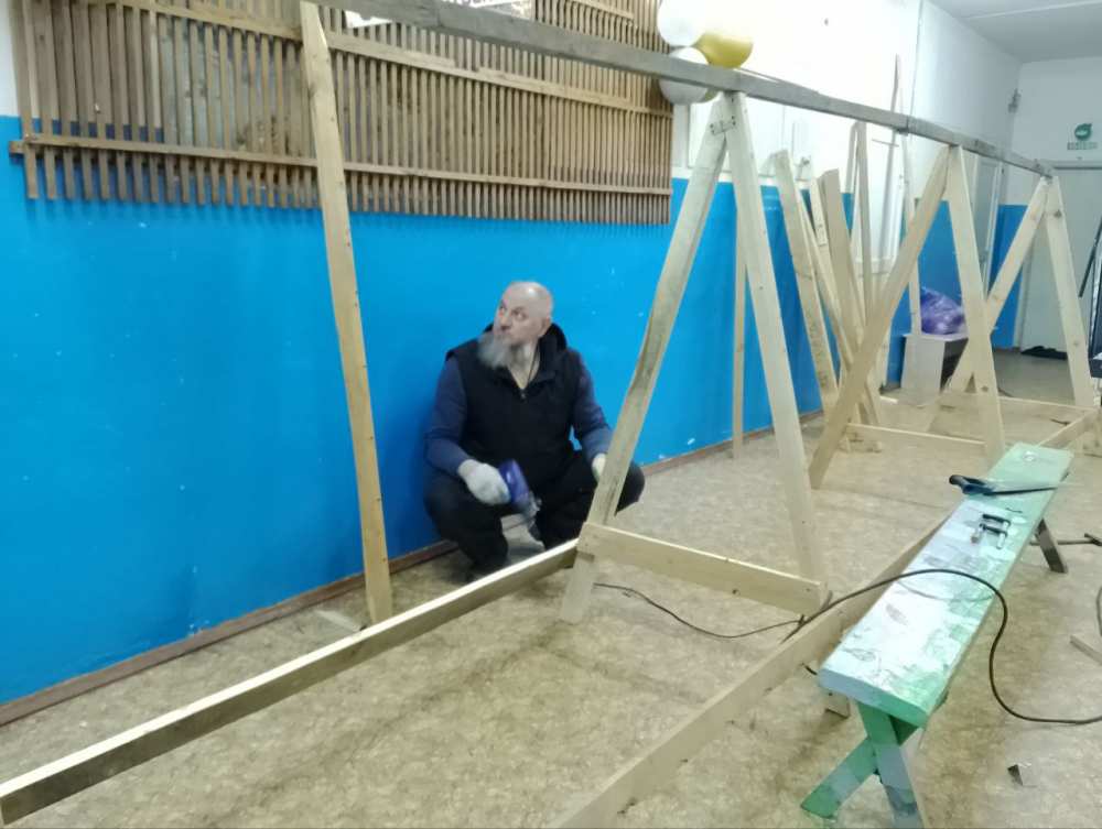 Настоятель храма иконы Божией Матери "Неупиваемая чаша", священник Александр, с Божией помощью, собрал новую стойку. Теперь волонтеры снова могут плести сети.