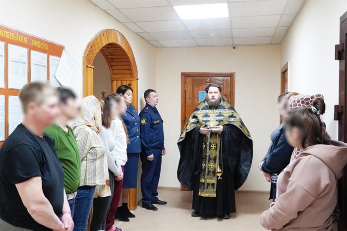 Протоирей Святослав Еренков совершил водосвятный молебен, после которого окропил святой водой жилые помещения, комнату воспитательной работы, комнату приема и приготовления пищи, подсобных помещений, молельную комнату, служебные помещения. Также священнослужитель передал иконы для молельной комнаты.