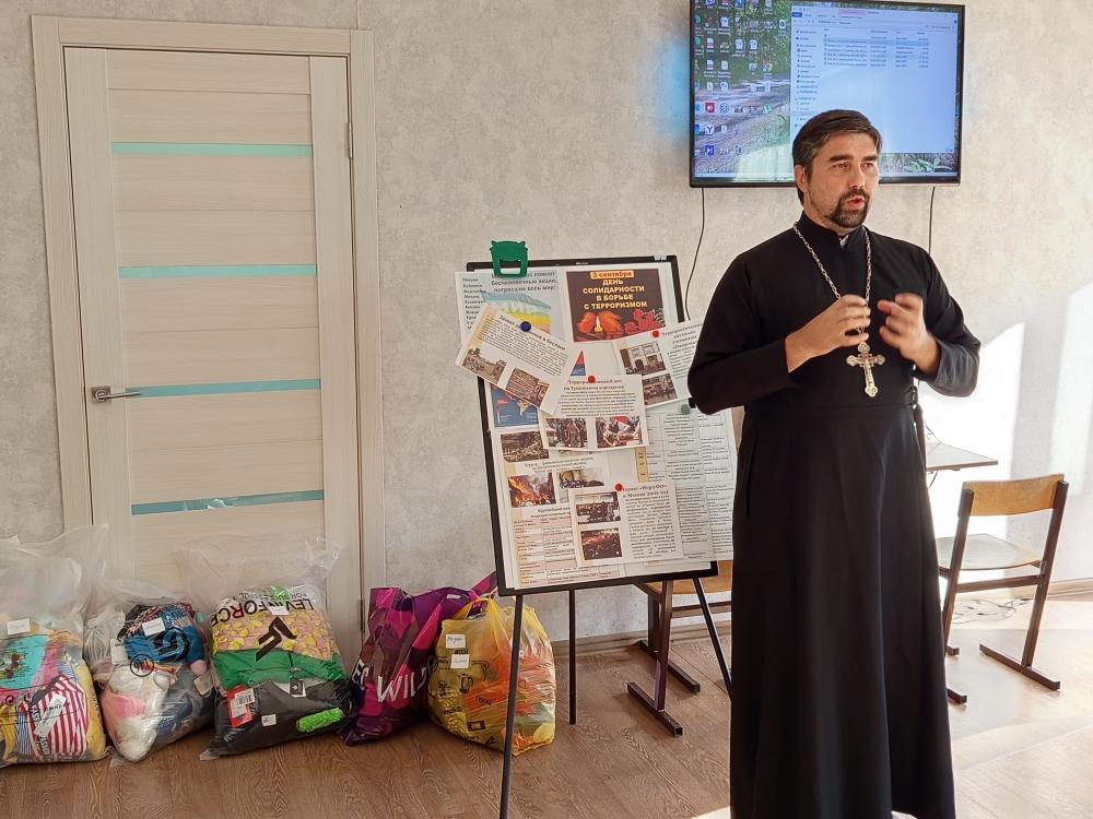 В ходе занятия ребята вместе с педагогом вспомнили самые ужасные теракты в истории, начиная с трагических событий, произошедших в прошлом веке, и заканчивая современными проявлениями террора. Педагог рассказал о том, как важна память о жертвах, и как она помогает не забывать о том, что происходит в мире.