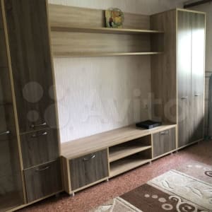 Есть мебель кухонный гарнитур, кровать, диван,без техники.
