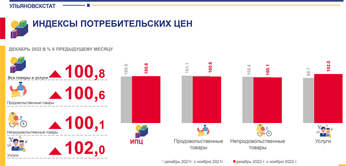 «Индекс потребительских цен на товары и услуги в декабре относительно ноября составил 100,8%, - пояснили ulpravda.ru в территориальном органе государственной статистики. - То есть за месяц в нашем регионе зафиксировано общее подорожание на 0,4%. Ранее такой же рост был зафиксирован в ноябре. А вот в октябре, для сравнения, этот показатель был чуть выше – 0,6%».