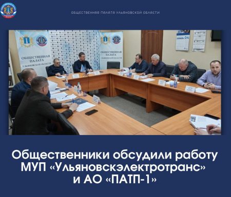 05 апреля состоялось заседание рабочей группы по проблемам в сфере работы общественного транспорта при Общественной палате Ульяновской области под председательством Риаса Камаева , где обсудили пути выхода из кризисной ситуации предприятия МУП «Ульяновскэлектротранс», а также деятельность предприятия АО «ПАТП-1 ».