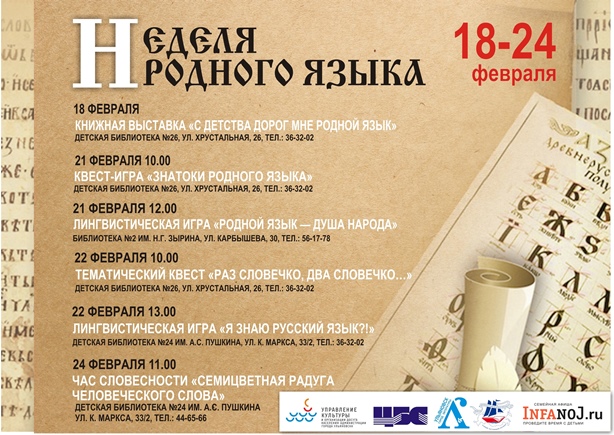 Познание себя и своего народа начинается с языка. 18 февраля 2023 в городских библиотеках стартует «Неделя родного языка», в рамках которой пройдут интерактивные и познавательные мероприятия.