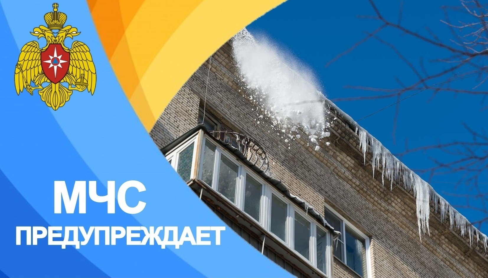 Уважаемые ульяновцы! Сотрудники Главного управления МЧС России по Ульяновской области предупреждают о возможности схода с крыш домов снега и наледи, падения с карнизов домов сосулек.
