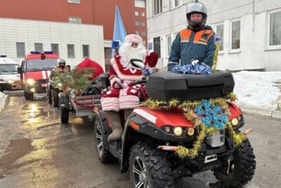 Кроме этого, с наступающим Новым годом ребят поздравили Дед Мороз со своей внучкой Снегурочкой. Только добирались они в этот раз не как обычно — на санях, запряженных оленями. На торжество им помогли подоспеть неравнодушные сотрудники МЧС, которые довезли сказочных персонажей с ветерком на квадроцикле.