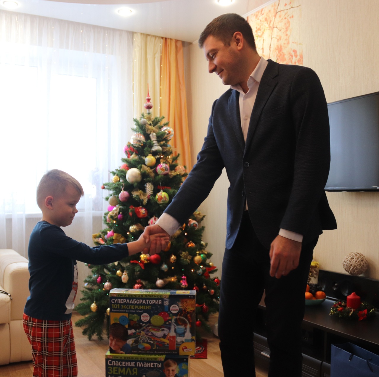 - Мальчик Александр мечтал о балансборде, а также позаботился и загадал подарки-сюрпризы для своего брата, который увлекается логическими и настольными играми и для сестрёнки, увлекающейся рисованием. Ещё особенный и очень яркий мальчик Сергей мечтал о планшете. Перед Новым годом мы все ждём чуда - как взрослые, так и маленькие. Нужно верить в чудеса, добро и дарить радость окружающим. Я с радостью исполнил мечты детишек и вручил желанные подарки, - рассказал Владимир Парамонов.