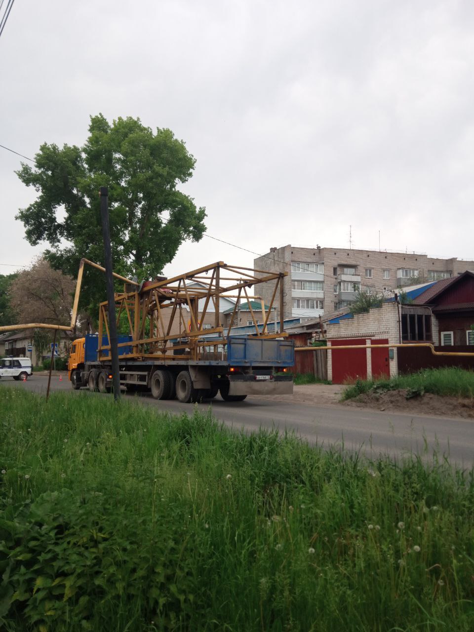 Около 15:30 в муниципальный Центр управления регионом поступил сигнал о повреждении в районе дома №83 по улице Автозаводской газопровода низкого давления грузовиком КамАЗ, перевозящим часть башенного крана.