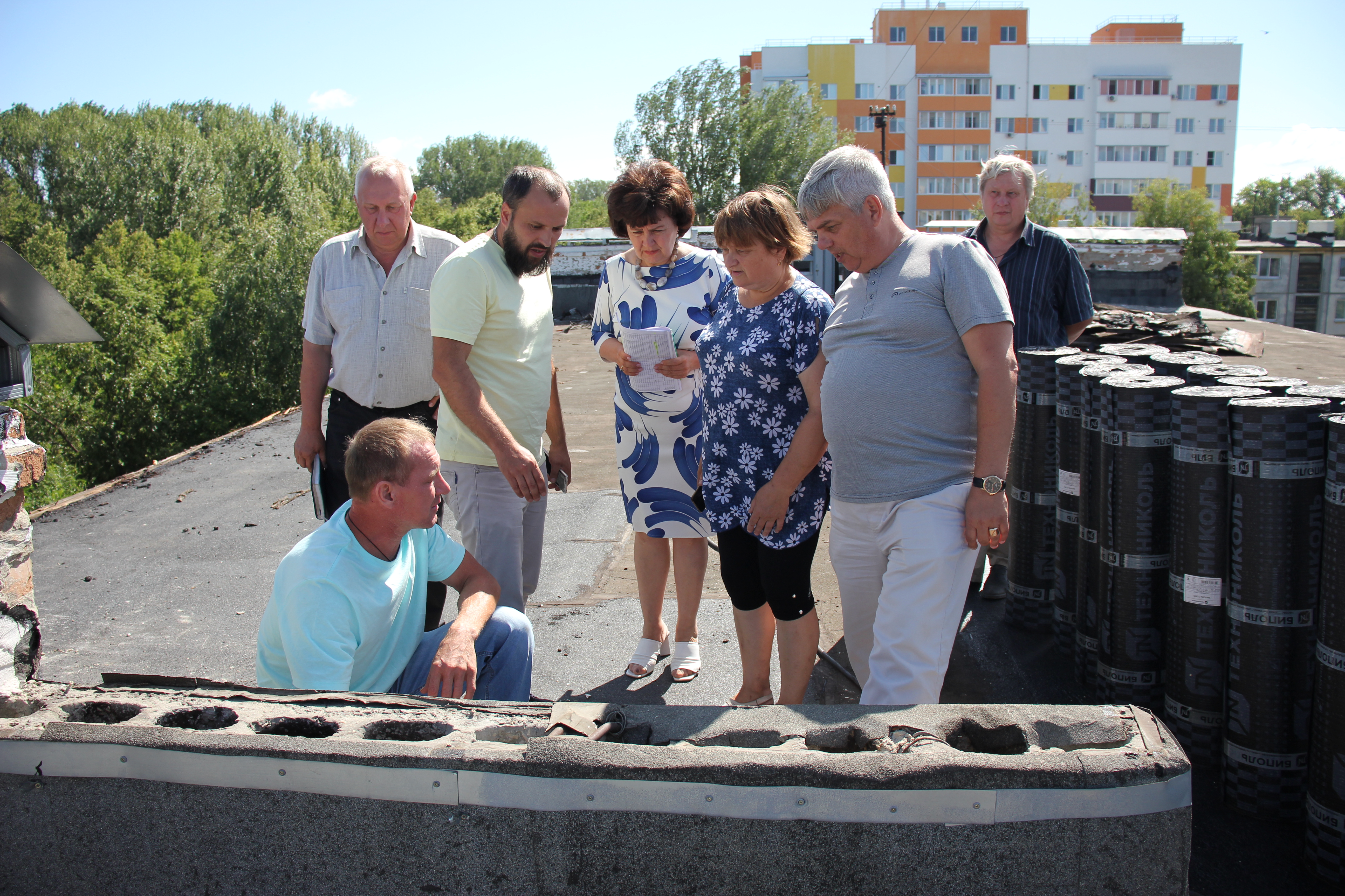 Ремонт кровли также проходит на округе Заместителя Председателя Ульяновской Городской Думы Алсу Айзатуллиной. 12 июля она вместе с председателем комитета по жилищно-коммунальному хозяйству, благоустройству и экологии Владимиром Фадеевым, стройзаказчиком и представителями от Управления ЖКХ и Управляющей Компании проконтролировала ход работ.