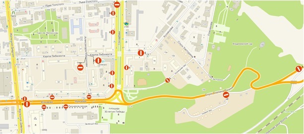 9 Мая с 5:00 до 23:00, в связи проведением парада Победы, движение автомобилей будет запрещено на следующих участках: