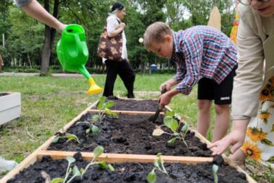 Вчера подвели итоги проекта. В нем приняли участие 15 семей, не имеющие своей дачи, но любящие заниматься садоводством. В засвияжском парке они высадили зелень, редис, томаты, капусту, ягоды. Также семейные грядки украсили цветы.