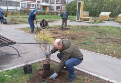 К посадке цветущих кустарников и деревьев на участке приступили 25 октября. Парламентарий участвовал в работах лично вместе с сотрудниками Городского центра по благоустройству и озеленению.