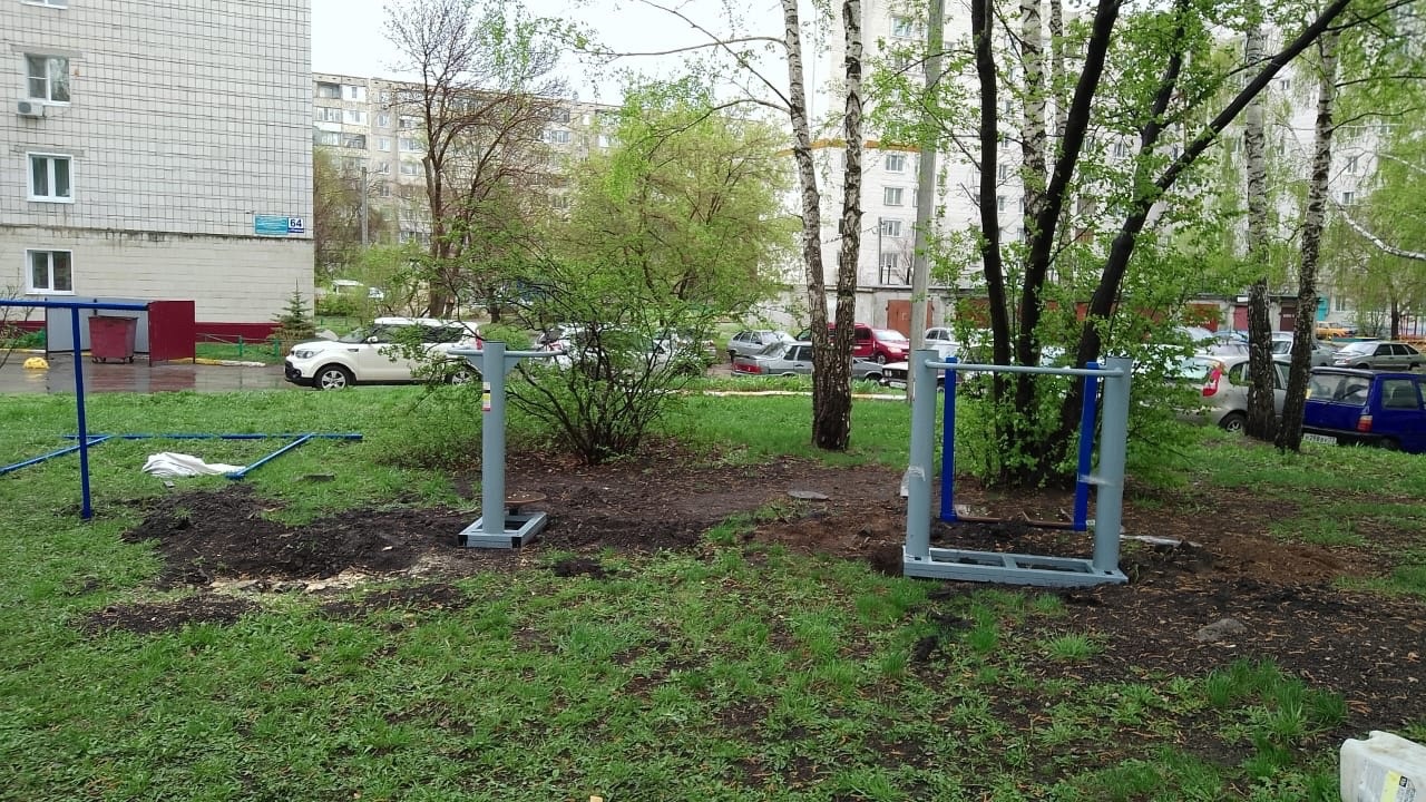 Во дворе дома №54 на улице Розы Люксембург устанавливают новый детско-спортивный комплекс