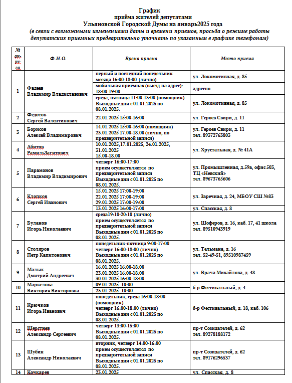 Ежемесячно парламентарии Ульяновской Городской Думы проводят личные приёмы на округах, в местных отделениях партии и личные встречи на местах, где помогают горожанам решать непростые вопросы.