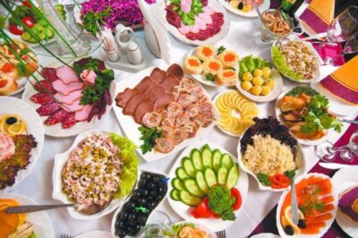Но ведь можно разбавить стол тарелками с большим выбором свежих овощей, которые заполняют желудок и позволяют быстро насытиться. Вредными для фигуры являются и разнообразные десерты: торты и пирожные с маргарином, взбитым кремом, шоколад. Их также можно заменить на фрукты, мороженое, желе или домашние пудинги, оценят гости и наличие фруктовых салатов, заправленных обезжиренным йогуртом.