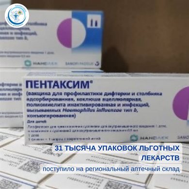 И еще на аптечный склад приняли 8 тысяч доз вакцины от пневмококковой инфекции и 10 тысяч доз детской вакцины «Пентаксим» от дифтерии, столбняка, коклюша и полиомиелита.