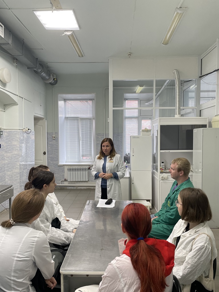 Провела занятие Юлия Клочкова, врач клинической лабораторной диагностики, заведующая клинико-диагностической лабораторией ГУЗ «ОККВД», главный внештатный специалист по клинической лабораторной диагностике Министерства здравоохранения Ульяновской области. Начало занятия она посвятила аспектам, связанным с деятельностью клинико-диагностических лабораторий, описанным в новых санитарных правилах и нормах СанПиН 3.3686-21 «Санитарно-эпидемиологические требования по профилактике инфекционных болезней» (с изменениями на 25 мая 2022 года). Затем состоялась обзорная экскурсия по отделам, в ходе которой лектор рассказала об основных направлениях деятельности клинико-диагностической лаборатории, включающих серодиагностику сифилиса, иммунологические исследования, ПЦР-диагностику в режиме реального времени, гематологические и общие клинические исследования, биохимические и бактериологические исследования крови и т.д.