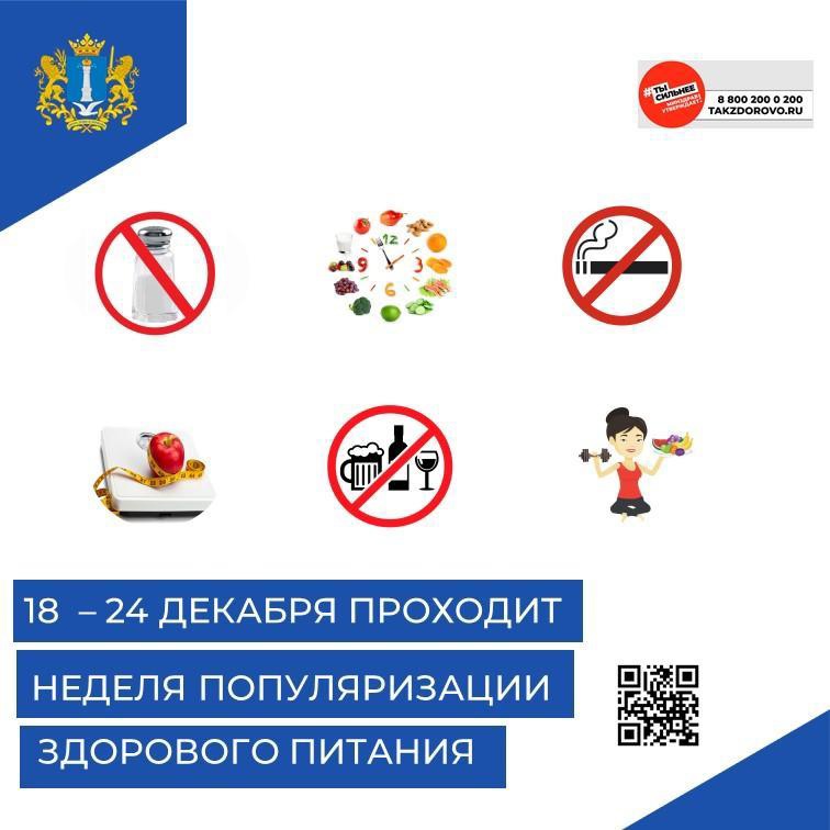 С 18 по 24 декабря в Российской Федерации проводится Неделя популяризации здорового питания.