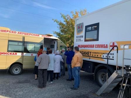 В ходе выездного мероприятия работал мобильный ФАП и флюорограф. Все желающие смогли проверить артериальное и внутриглазное давление, им определили индекс массы тела, измерили рост и вес, окружность талии и бёдер, дали рекомендации.