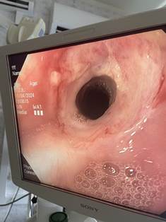 При контрольном исследовании диаметр отверстия составлял 2–3 мм, было принято решение провести аргоноплазменную коагуляцию рубцового сужения. После пяти сеансов лечения пациент смог нормально питаться.